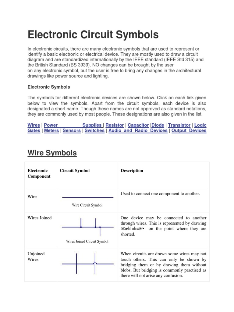 Electronic Components And Circuit Diagram Symbols