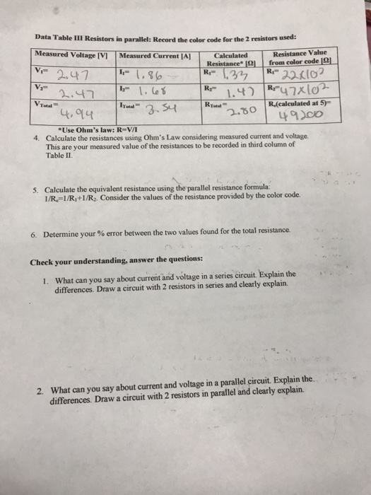 Solved Data Table Ii Resistors In Parallel Record The Co