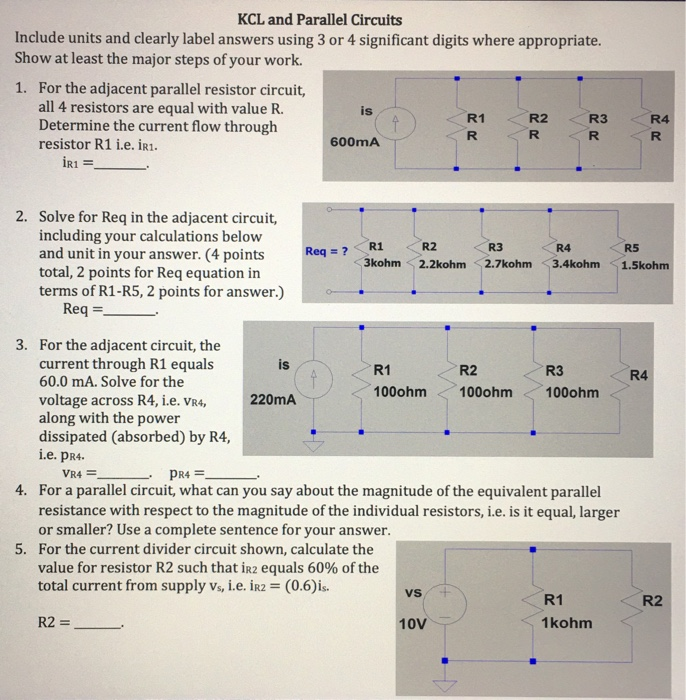 Solved Kcl And Parallel Circuitsinclude Units And Clearly