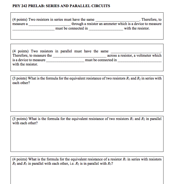 Solved Phy 242 Prelab Series And Parallel Circuits 4 Po